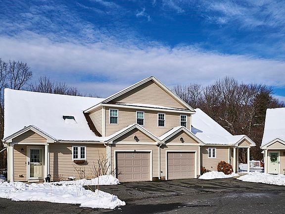 Highest and Best offers due Tuesday at 5:00. No escalations or personal letters, please. HIDDEN GEM FOR ALL AGES!! Lovely townhouse condo with soaring ceiling, gas fireplace, transom windows and open floor plan. Generous three bedrooms, home office and 2 1/2 baths offers so much great space! Kitchen with granite countertops and stainless appliances open to living and dining areas. First floor primary bedroom has en suite with walk-in shower. New Propane furnace and central air installed 2022. Peaceful and private screened porch overlooking the woods - Enjoy your morning coffee surrounded by nature! Nestled toward the end of a quiet complex with an attached garage and two parking spaces. Located in the center of Belchertown, walk to shops, town common, public transportation and post office. First showing at the open house Sunday, 3/19, 12-2PM