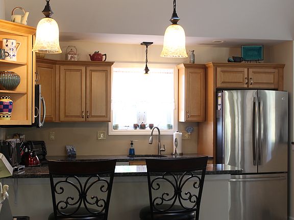 - Kit Dscrp: Countertops - Stone/Granite/Solid, Breakfast Bar / Nook, Ceiling - Cathedral, Stainless Steel Appliances, Open Floor Plan, Flooring - Wood, Skylight