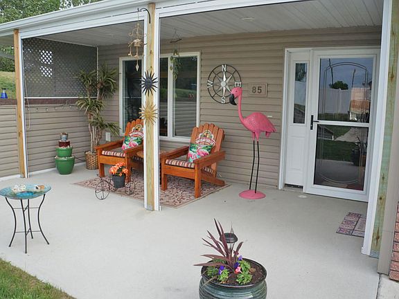 WELCOME HOME to this BEAUTIFUL PATIO HOME, END UNIT. ENJOY the VERY ATTRACTIVE front patio for coffee in the morning and in the evenings WITHOUT THE BUGS with the pull down built in screen. Seller had this installed and stays with the property. ENTER the home to a WARM AND INVITING OPEN CONCEPT, LARGE front window for good natural light. Cozy up to the fireplace/mantel that is newly installed. Kitchen offers open floor plan, beautiful cabinets, sit-up breakfast bar, skylight and LARGE pantry and modern appliances. The Master bedroom is large, with walk-in closet and Large vanity. The other 2 bedrooms are also nice sized. Walkout the deck doors in the rear to Enjoy the back Patio with your own fenced in area for PRIVACY. (white fence was just installed approx, 1 1/2 yr ago ). the back yard is landscaped and the chipping was just added so you just need to plant your own greenery if you would like. Let the sprinklers water the plants and your lawn. The Garage has epoxy floor and is very spacious and clean. There is 2 parking spots at the front of the unit that belongs with this property. NEW SHINGLES, GUTTERS AND SIDING after last summers storm. This is a very well MAINTAINED home and it shows. COME TAKE A LOOK YOU will NOT be disappointed. Call an agent TODAY