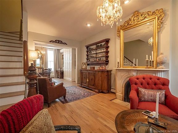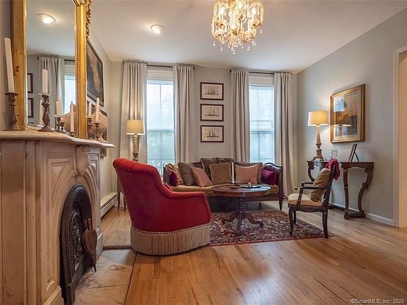 This exquisite condominium with architecturally historic detailing and refined elegance is incredibly calming and relaxing place to live. It is styled like a European pied a terre, while centrally located in historic Wooster Square that's moments away from the train station, downtown, Yale University, YNHH, and world class museums. Completely renovated, the home features high ceilings, nearly floor to ceilings windows triple-glazed by Pella, oak flooring, contemporary and vintage crystal lighting fixture, a cook's kitchen and updated bathrooms. The living room, large enough for two seating areas has architectural details such as deep crown molding, Swarovski crystal chandelier, and a vintage Italian marble fireplace. The paneled dining room is open to both the living area and kitchen. The renovated kitchen has custom cabinets, granite countertops, commercial grade stainless steel appliances making preparing meals a dream. The elegance continues upstairs. The open floor plan includes an en suite master bedroom with built-in bookcases, closets, and updated bathroom. The adjacent office with bath can easily be converted to a 2nd bedroom. Mini-Split HVAC system with a back up gas furnace ensures your comfort both summer and winter. Live in the desirable Wooster Square neighborhood, where Japanese cherry blossoms line the square and is home to world famous pizza! For those who want quality with a touch of history, this home is it!