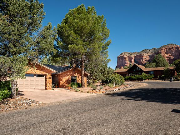 This tastefully updated, single-level residence seamlessly blends Sedona's timeless ''red stone ranch'' style with interior finishes inspired by modern farmhouse & craftsman design details. This 1798 sq. ft. home offers 2 BR, 1.75 BA & is situated on a beautifully treed .35-acre parcel. The LR features: Vaulted ceiling, focal point red stone FP, ceiling fan, Brazilian hardwood floors & slider to patio. The remodeled kitchen (2016) features: modern farmhouse style, ceiling to counter subway tile, large picture window, newer appliances, farmhouse sink, pantry, and breakfast nook. The spacious dining room highlights: Brazilian hardwood floors, craftsman inspired chandelier, access to the patio & connects the LR & kitchen. See supplement!!