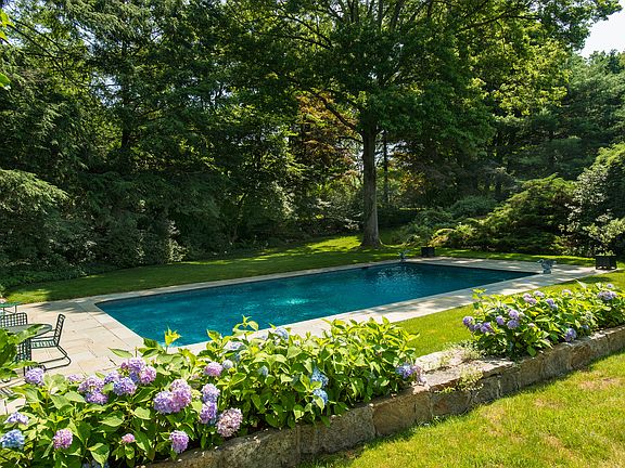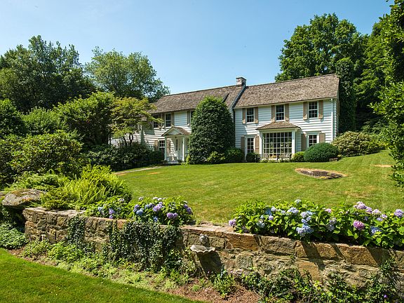 For the first time in 47 years, discover this historic compound. Classic design is timeless, and this thoughtfully updated colonial does not disappoint. Grand formal rooms, all with fireplaces, in concert with an updated butler's pantry and kitchen, are an entertainers' delight, while still a warm and welcoming family home. Upstairs you find six bedrooms and four baths. A large mudroom, cedar closets, wine vault, and three-car garage serve today's needs. The setting is incomparable. Stroll through the 4.3 acres of spectacular plantings, hidden pathways winding through rock gardens, the apple orchard, and a sweep of open lawn, to the heated pool, tennis court, and incredible guest cottage. The cottage boasts a great room with French doors and fireplace, a bunk room, master and two baths. It's a dream.