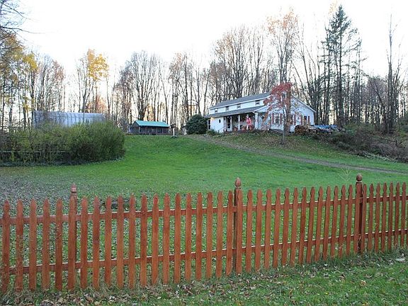 Charming farmhouse on 8.5 acres with barn. Original flooring throughout most of the home.First floor has 6 rooms: living room w/den, dining room, spacious kitchen w/brand new appliances & walk-in pantry, laundry room, master bedroom and full bath. There are 2 staircases leading to the 2nd floor, one from the foyer and one from the kitchen.Upstairs you will find 4 bedrooms and a bathroom.You have to walk through the 3rd bedroom to access the 4th.Roof is 6 years/hot water heater 7 and furnace is 9.Multiple outbuildings: 48'X24' barn, chicken coop, shed and a detached 3-season room w/wood burning fireplace. Rocking chair porch leads to enclosed porch/mudroom before entering the house. This property is peaceful and offers, trails to snowshoe, a nice big yard and plenty of privacy.
