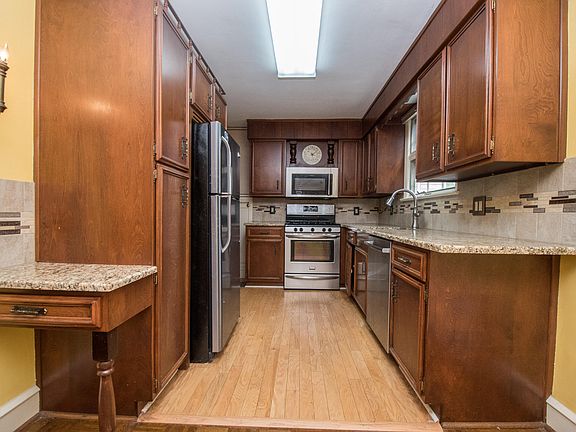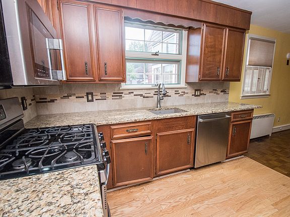 Wrapped up like a Package in a White Picket Fence, Cape Cod with CHARACTER! Kitchen has Custom Cherry kitchen cabinets, granit and stainless steal appliancances. Solid wood walnut wainscoating with parquet/ hardwood floors, surrounded by large wood moldings. Pass through A Glass Topped Tower to access the patio, backyard playset and custom shed. Stay cozy/ cool with a gas fireplace and cen. A/C