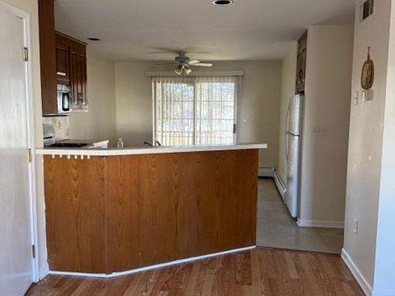 1st Floor Ranch unit in 4plex condo on cul - de -sac with 2 spacious Bedrooms , Pergo floors , 1 Bath, sliders to deck off kitchen. Garage, coin Laundry On Premises. Plenty Of Storage. Unit will be freshly painted. New refrigerator and Stove 1st Month Rent 2 Months Security . Credit & background check Tenant pays , Water , Gas , electric & Cable