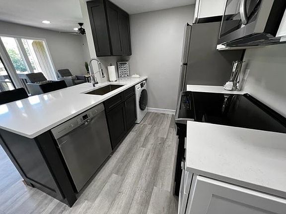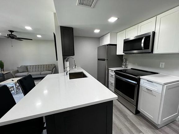Beautifully remodeled condo with view of golf course. New quartz counter tops, new appliances, new flooring and paint, new bathroom fixtures and vanity. This apt comes completely furnished with housewares. Water, cable, internet and trash removal are included in the rental fee. Proof of Renters insurance is required before move in. 9-12 month lease required.