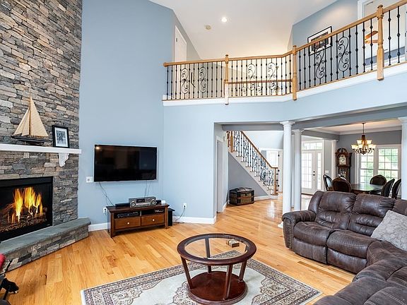 Come in and fall in love! This beautiful modern colonial boosts a bright open floor plan with hardwood floors throughout. The 1st floor offers a eat in kitchen with 42 inch cabinets, walk in pantry, granite countertops, & stainless appliances. The great room has an eye catching floor to ceiling stone gas fireplace, cathedral ceilings, lots of windows and access to the deck overlooking the hot tub and private yard. The formal dining room is open concept, off the main living area. The main bedroom suite has a triple-tray custom ceiling, a large en-suite that offers separate vanities, walk in shower, jacuzzi tub and a large walk in closet. A bright and sunny office with French doors for privacy. 1st floor 1/2 bath and laundry room. The grand stairway leads to the second floor balcony, overlooks the great room. The 2nd floor offers 3 more bedrooms a Jack and Jill bath and bonus room. 2 car garage, natural gas and central A/C.