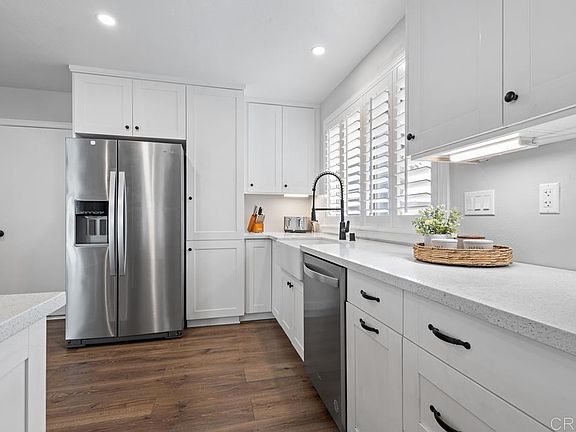 Discover your dream home in the heart of Chula Vista! This charming single-story gem, nestled in a tranquil cul-de-sac, offers the perfect blend of comfort and convenience in one of Chula Vista’s most sought-after communities. Step inside to find a meticulously updated interior with new laminate vinyl plank floors throughout the home. The heart of this residence is the stunning renovated kitchen which features white shaker cabinets, quartz countertops, stainless steel appliances, and an island with a stove. The open floor plan provides a seamless flow to the living area, which offers a brick fireplace and shutters, ideal for relaxation and entertaining guests. This delightful home offers three bedrooms and two full bathrooms, ensuring comfort and convenience for you and your loved ones. The property has been upgraded with Solar Panels, a new tankless water heater, furnace, HVAC system, ducting, and garage door opener, ensuring a worry-free living experience. The spacious 2-car attached garage includes washer and dryer hookups, providing ample space for storage and laundry needs. Step outside to your private oasis, where mature Orange and Plumeria trees adorn the spacious backyard, offering a serene retreat for outdoor gatherings. Situated close to award-winning schools, major freeways, and a variety of shopping options, this home ensures that all your needs are within easy reach. Enjoy the best of Chula Vista's parks, recreational facilities, cultural attractions, North Island Amphitheatre and Sesame Place San Diego all just minutes away. Schedule a showing today and make this delightful property your new home! Don't miss out on the opportunity to experience the perfect blend of suburban tranquility and urban convenience. Welcome to your new Home Sweet Home!