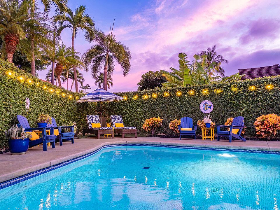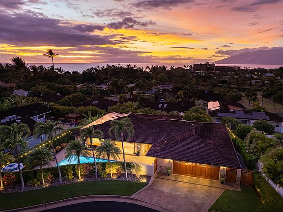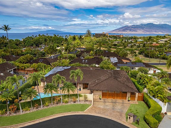 Just steps from the golden sands and turquoise waters of Keawakapu Beach, 85 Pukolu Place in Wailea Kai captures the essence of Maui living with a rare blend of luxury, comfort, and entertainment. Nestled within a secure gated community, this custom-designed 5-bedroom residence offers a lifestyle that goes far beyond the ordinary Wailea home. From the moment you arrive, you’re welcomed into your own private resort setting. The front courtyard was thoughtfully designed for unforgettable gatherings—complete with a sparkling pool and spa. A putting green and even a bocce ball court in the backyard to keep everyone entertained. Multiple covered lanais provide seamless indoor-outdoor living, perfect for sunset barbecues and weekend get-togethers under the stars. Inside, the open-concept design showcases fine craftsmanship and elegant finishes. Travertine floors, hand-crafted African Mahogany doors, and wrought-iron detailing create a refined yet warm atmosphere. The chef’s kitchen is a true showpiece, featuring top-tier Sub-Zero and GE Profile appliances, over 70 linear feet of custom cherry cabinetry, and a 10-foot granite island that doubles as a casual breakfast bar. The home’s thoughtful floor plan places three bedrooms on the main level, including a private primary suite with its own lanai, spa-inspired bathroom, soaking tub, and dual vanities. Two spacious guest rooms share a beautifully appointed bath with walk-in shower. An additional lanai off the dining area is now equipped with a brand-new KitchenAid BBQ, providing the perfect outdoor kitchen for entertaining. The lower level is designed for fun and relaxation, highlighted by an expansive 1,400 sq. ft. entertainment lounge with a custom Koa wood bar, theater setup, and unique surfboard-inspired shelving. Two more guest bedrooms and a versatile laundry/flex room complete this space, offering comfort and privacy for extended family or visiting friends. Sustainable living is built into the design with 42 owned solar panels, while a grove of 11 fruit trees adds a touch of island charm. With its blend of high-end amenities, indoor-outdoor flow, and prime location across from one of Maui’s most beloved beaches, this home truly embodies the Wailea lifestyle. Wailea Kai residents enjoy close proximity to world-class golf, fine dining, boutique shopping, and more than a dozen pristine beaches. Ownership also includes access to the Wailea Golf Club community membership, making this one of the most desirable opportunities in South Maui. This is more than a home—it’s a destination to create memories, celebrate life, and enjoy the very best of Wailea.