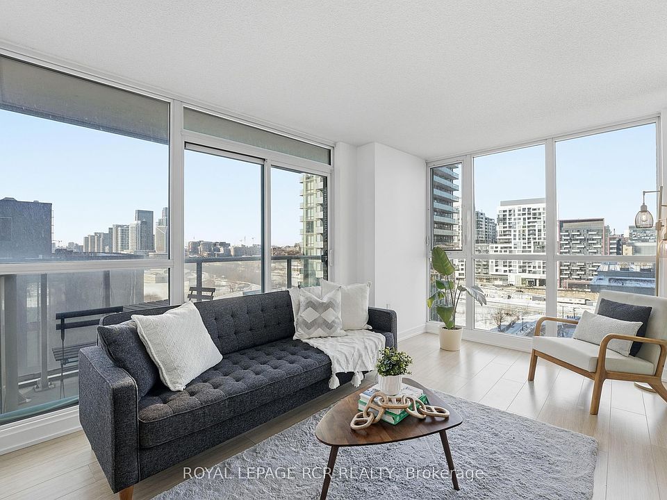Sunny and Spacious corner unit! This one bedroom condo offers style and function. With 590 square feet of living space the layout is a dream. The chic kitchen with a centre island for additional counter space or which doubles as a dining table. The living room is flooded with natural light from the floor to ceiling windows on all sides. Enjoy your morning coffee from the balcony overlooking vibrant City Place. The frosted glass doors provide thoughtful design for privacy in the bedroom or airy open concept living. Ample closet space and you will love the generously sized bathroom and ensuite laundry. The condo also includes an owned locker. Spectra condos offer superb amenities including: 24-hour concierge/security, a gym, an indoor pool, outdoor hot tub, billiards room, double badminton and basketball court, yoga studio, massage lounge and more! Situated mere steps from the CN Tower, Lake and Harbourfront, Rogers Centre, Loblaws, Shoppers Drug Mart, Restaurants and more! Easy access to the QEW, DVP and Public Transit. Live your best life in Downtown Toronto!