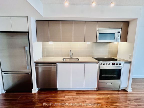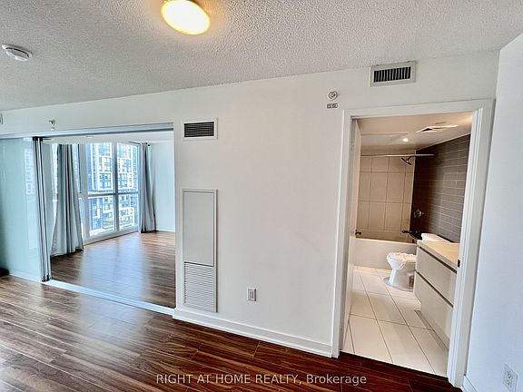 Welcome to Spectra Condos, ideally positioned in the vibrant heart of CityPlace, Downtown Toronto. This contemporary one-bedroom suite offers a well-designed, efficient layout enhanced by abundant natural light. Sleek sliding glass panel walls provide flexible living-open them to extend your main living space or close them to create a private bedroom retreat. The spacious walk-through bathroom serves as a functional semi-ensuite, with direct access from both the bedroom and main living area. Floor-to-ceiling windows and a north-facing Juliette balcony invite fresh air and ample light, creating a bright and welcoming atmosphere. The modern dual-tone kitchen features under-cabinet lighting and a stylish backsplash, delivering a clean and sophisticated finish. Perfectly situated beside the expansive 8-acre Canoe Landing Park, complete with sports fields, a dog park, playground, splash pad, and walking trails. Steps to transit, schools, the community centre, library, and everyday conveniences-this is urban living at its finest. Note: Photos of Unit Taken Prior To Current Tenant Moving In