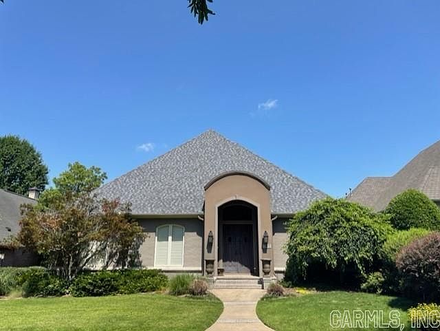 One level home with 3 bedrooms, office, Formal dining room, tall ceilings, 2 fireplaces, and travertine floors in main areas. 2 car garage with golf cart garage. Abundant storage, stairs to large floored attic. Private patio for outdoor entertaining. Lawns are maintained by POA.