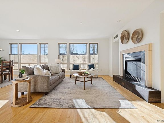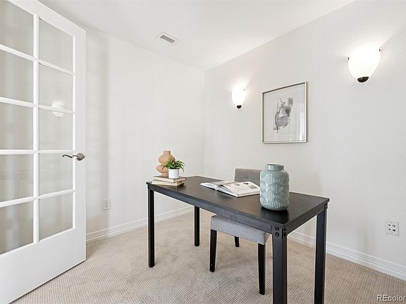Opportunity knocks with this rarely available one level condo in the heart of Lowry. Wonderful open floor plan featuring great room with gourmet kitchen, open to dining area and sunny living room with gas fireplace. The great room separates the 2 bedrooms creating privacy for both. Easy one level living in Lowry with a luxurious primary suite featuring a 5pc ensuite bath. An office/den features glass French doors creating a quiet space. Fantastic finishes & upgrades with new carpet and paint, hardwoods throughout the great room, a large center island work space, and stainless steel appliances including a 5 burner gas cooktop. The discreet laundry area is off the front entry, away from primary and living areas, and includes a full size washer and dryer. This home is move-in ready including all appliances. The sunny southwest balcony is ready for your gas bbq, with mountain views. The secure garage is accessed from the elevator and includes 2 deeded parking spaces close by, plus a storage space at the front of #12. The shared courtyard in the center of the community welcomes you for group dining and barbques. Perfect location within walking distance to parks, shops & dining. Convenient proximity to numerous award winning schools, with easy access to Cherry Creek, CU/Children’s Medical Campuses & Downtown. Your search is over, this home has it all!