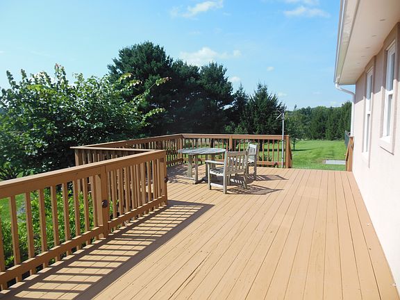 Simply beautiful 3 bedroom ranch with views. 3 plus acres. Nicely maintained, expanded updated kitchen with oak cabinetry and tile floor, wood floors, 2 full baths, central air, exterior basement doors, 2 car garage, deck, newer solar heated pool, 2 sheds, new landscaping, 2 fenced pastures, on historic country road in Delaware Township. Great location.