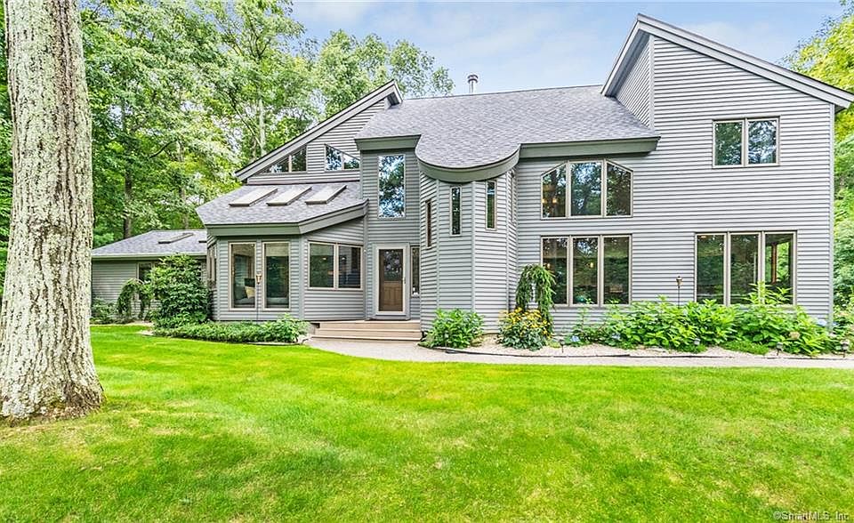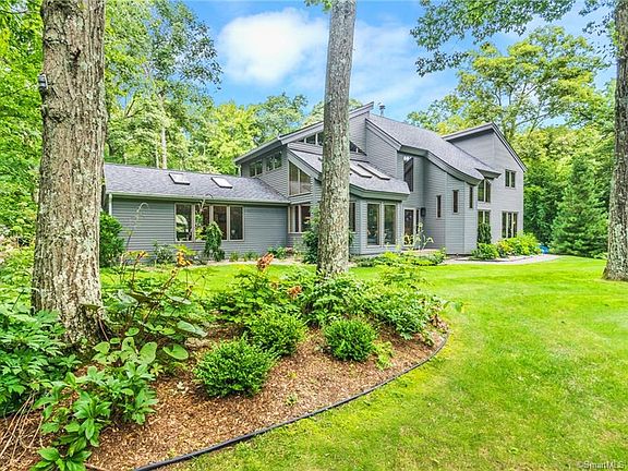 Tucked away in South Glastonbury you will find a private driveway lined with mature plants leading to an updated home set on a serene piece of land with lush professional landscaping and gardens surrounded by a majestic natural rock wall. This contemporary home has been scrapped of all popcorn and modernized throughout. Gourmet kitchen features custom crafted cabinetry, imported Brazilian granite counters and state of the art Thermador appliances including double ovens, five burner gas stove, oversized refrigerator, extra-large stainless steel farmers sink and custom designed wet bar with built in wine cooler. Large island with seating for six and additional prep sink center the room. Kitchen flows effortlessly into large dining area great for gatherings. Newly installed Tobacco Road Acasia hardwood floors are simply gorgeous. Living room off kitchen features large windows, soaring ceilings and resurfaced fireplace with high efficiency wood burning insert. Luxurious lighting fixtures throughout the interior and exterior of the home. Master bedroom suite with full bath, copious closet space and additional dressing room/nursery. New high efficiency on demand Navien heating and cooling system with smart WiFi thermostats. New roof installed with impermeable weather guard. Backyard is perfect for an intimate gathering, relaxing by the firepit or gazebo or entertaining a large group. So much more to list, this is a must see home!