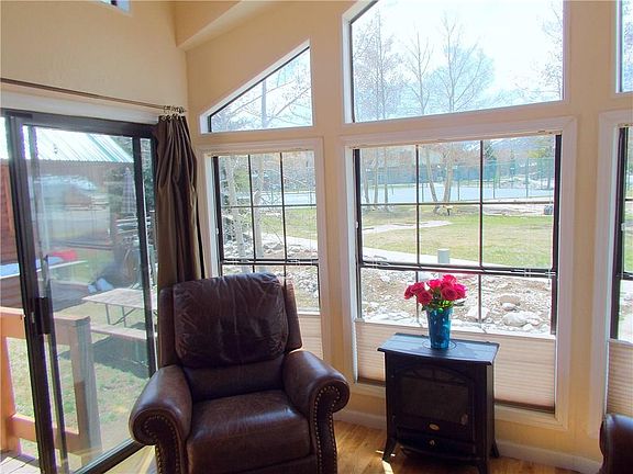 Watch the sun set over the Ten Mile Range from your patio or your living room on this open floor plan one bedroom/one bathroom, plus loft chalet. Very well maintained, with wood floors, forced air propane heat, dishwasher, a washer/dryer, and a brand new electric pedestal and water riser. Backs up to the clubhouse and tennis courts, offering easy access to all of the resort's amenities!
