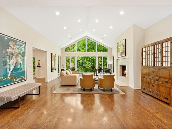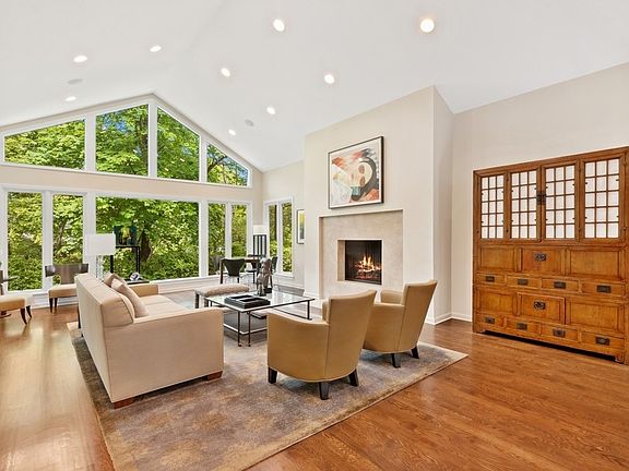Set on one of East Highland Park's most sought-after streets, this beautifully appointed ranch style home is situated on a stunning ravine setting with seasonal lake views. Prepare to be wowed as you enter the home; picturesque views with walls of windows, vaulted ceilings and an extensive use of the finest finishes and materials showcased throughout the home. Features include a stunning primary suite with expansive views, generous walk in and built-in closet space, a beautiful and serene primary bath with heated floors, separate vanities, gorgeous soaking tub, oversized shower, and private commode. The third bedroom can be considered a den, the fourth bedroom is currently utilized as an office. All main-floor bedrooms are en-suite. The airy custom chef's kitchen includes high-end stainless-steel appliances and sweeping rear views. Sizable laundry/mud room with plentiful pantry space and wall of storage. The lower level is complete with a finished recreation room, generous bedroom, and large storage area. Incredible location, steps from beach, restaurants, shops, library, movie theater, Metra, and so much more. A truly stunning home.