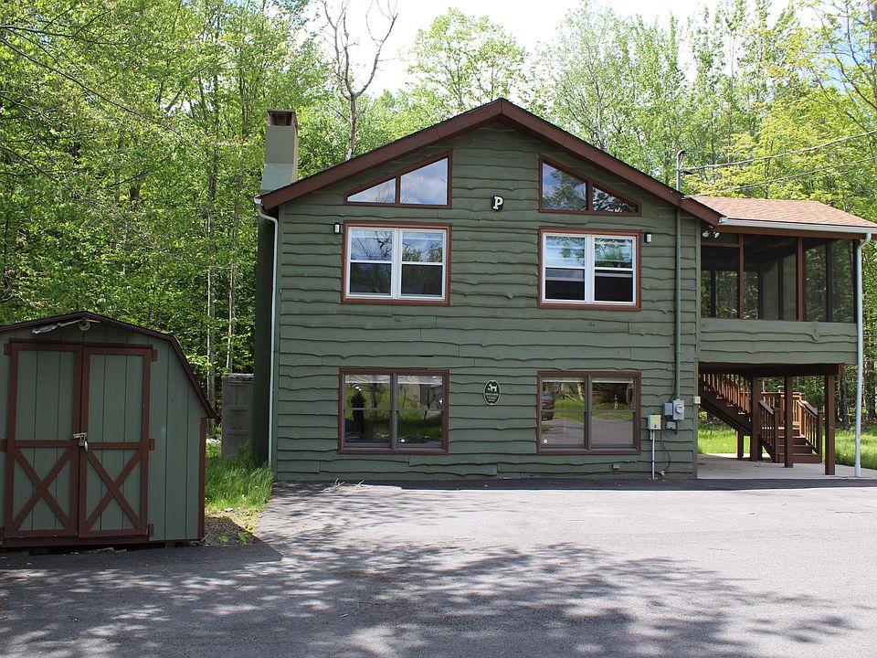 Wood-sided raised ranch in amenity filled gated community. This home features a vaulted ceiling in the great room combo kitchen, living and dining areas. Recent improvements include upper level replacement windows and freshly painted exterior (2015) Lower level family room, huge tiled bath, bedroom with solid wood pocket doors were completed in 2016. A pellet stove was added in 2017. Other upgrades include cement patio and paved drive. The home is conveniently located between the north rec complex (pool, tennis, playground, handball) and the Golf course (9 holes, clubhouse and pro shop) and indoor Sports and Rec center (indoor tennis, fitness center, sauna, arcade). Entire interior has been renovated/painted. Wet bar and pool table available downstairs