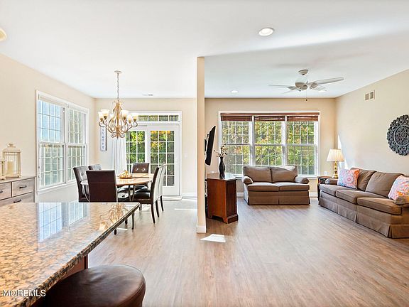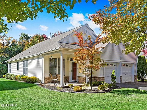 THIS IS THE ONE YOU'VE BEEN WAITING FOR! EXTENDED Azalea - a favorite in this highly sought after community, offers easy living on a PREMIUM LOT in a private, park-like setting overlooking woods. Updated w/attractive architectural details & newer luxury vinyl plank floors, this Sparkly & bright 2 BR, 2 BA home includes a 2 car Garage and welcoming Front Porch! You will love the neutral color palette & seamless one-level living w/ numerous windows allowing for an abundance of natural light. Spacious, adjoining Living and Dining, optimal for hosting & entertaining. Fantastic open Kitchen boasts granite counters, center island w/seating, premier GE appliance package, and sun-drenched Breakfast Room adjacent to an inviting Family Room. Sliders to a spacious paver patio, ideal for outdoor BBQ Gracious Primary Suite w/ WIC showcases an elegant tray ceiling & features full bath w/ walk-in shower & tub. Flexible additional bedroom and updated full bath. A tranquil rear paver patio is ideal for relaxing with friends & relatives after a beach day. Residents of Rolling Meadows can enjoy an active, yet leisurely lifestyle w/ gorgeous pool, tennis, pickleball, bocce, + vibrant clubhouse w/ abundant social activities & clubs. Gated Community with Secure Access after 9 pm daily. Near superb Jersey Shore beaches, top-notch restaurants & shopping. Close to NY Trains, Ferry, GS Pkwy, Rt 18. An opportunity not to be missed! *All SF approx. - per tax