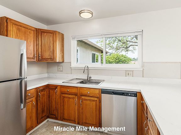 OPEN HOUSE SATURDAY April 19th 11am-12pm Tucked above the Bret Harte neighborhood, this clean 3-bedroom home offers a peaceful retreat surrounded by mature trees and nature. The freshly painted interior features a light and bright living room with new LVT flooring, and a kitchen equipped with brand-new countertops, new stainless refrigerator, new stainless dishwasher, stainless gas range, stainless steel sink, new faucet, new lights, plenty of cabinet space and large dining area. All three bedrooms have new carpet, including a primary suite with an en-suite bathroom. A spacious upstairs bonus room is perfect for a family room, home office, or creative spacewith a great view to top it off. The private backyard is ideal for BBQs and outdoor relaxing, complete with a mature lemon tree. Additional features include a 2-car garage and washer/dryer hookups. Call Agent to view Miracle Mile Management #01705894