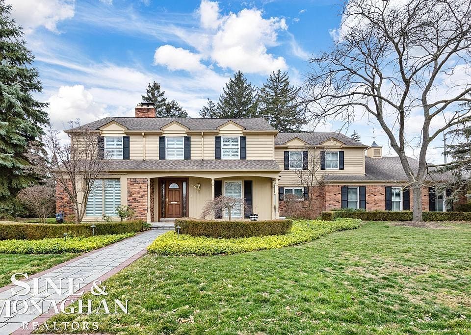 Charming colonial located in the heart of Grosse Pointe Shores is an entertainer's dream home. Special features include a large open kitchen with sprawling island and two dining areas including one in the kitchen overlooking the gorgeous backyard pond and built- in stone fireplace and brick patio. Kitchen comes complete with sub zero refrigerator, double ovens, two dishwashers, and plenty of storage. Extraordinary vaulted ceilings and fireplace in the open family room large enough to compliment a wet bar complete with a refrigerator and ice maker. The formal dining has an adjoining butler's pantry that segues across to the bar area or kitchen and provides enough space to accommodate large family gatherings. Extraordinary primary suite with large walk-in closet and ensuite bath with steam sauna shower. and tub. Fully finished basement with wet bar, microwave, dishwasher, refrigerator, ice maker, and storage space including a walk- in cedar closet to keep everything fresh, organized, and easy to find. Plantation shutters throughout add great character to every room. Situated on a private cul-de-sac, this home sits nestled on a spacious lot with meticulously maintained landscape on all sides. Three car garage, two laundry rooms, one on the main floor and one in the basement. A truly unique and exquisite home for all to enjoy.