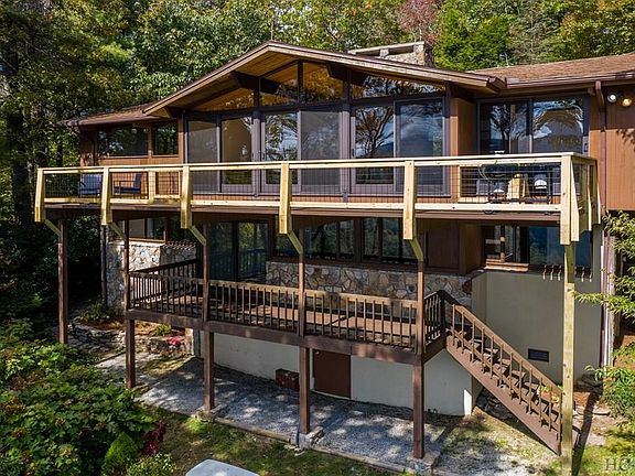 First time on the market, a family home that is filled with a lifetime of memories. Only 3 minutes from downtown Highlands. With a nod to mountain contemporary style, this home's focal point is the view. The freshly painted interior beams and new flooring draw your eye to the uninterrupted mountain views. A large stone wood burning fireplace is the centerpiece of the living room, warm and inviting. The original kitchen is tucked slightly behind the fireplace, and has a view of the living room and mountains beyond. The master bedroom suite is on the main floor. The 1/2 bath is also on the main level. The lower level has two bedrooms, 1 bathroom and an additional living room (with stone fireplace), a fun and cozy location for family or friends. To the right of the lower level fireplace is an additional space for: an additional sleeping room, home office, yoga or art studio. The grounds are beautifully planted with native vegetation. 2 car garage. Generator. All located in Sagee Mountain, one of the most prestigious and sought after communities in Highlands. Did we mention the view? Sellers estimate that the home is close to 3000 square feet - please verify with your own sources.