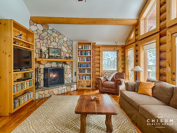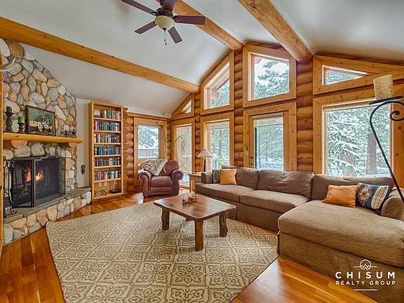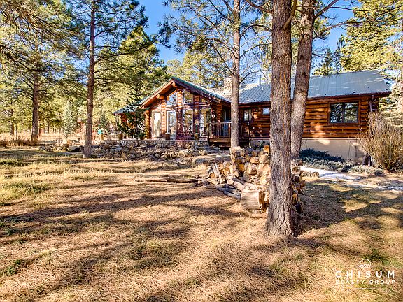 Experience log home living in the mountains of Angel Fire with 85 San Mateo Drive. Located on a mostly level lot with a beautifully landscaped yard that features multiple ponds, a fenced-in backyard and wandering stone paths. If you want a little more privacy, the two lots to the South of the house can also be purchased separately. Inside, you'll find a well maintained log home with a lot of warmth and character. The southern facing great room is filled with sunlight, has hardwood floors, vaulted ceilings and a wood burning fireplace surrounded by stone. The neighboring sunroom features tile flooring, large windows and two skylights that help warm the house in the winter and brings the outdoors inside, a great spot to relax! The home also features a formal dining room with pocket doors and an impressive kitchen with custom cabinets, granite countertops and beautiful tile backsplash. A breakfast nook is also located in the kitchen. All three bedrooms are on the main floor with the master bedroom boasting a gas burning Kiva fireplace, large closets and an ensuite bath with a soaker tub and separate shower. Downstairs features a bonus room, currently being used as a bunk / bedroom, plus a one car garage and a storage area. This home is mostly furnished and move-in ready, please call us for a tour!