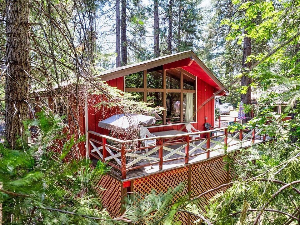 Rustic cabin that sits 1.63 Acres. The cabin is located above Lake Oroville, and enjoy mountain living with paved access to a charming 2-bedroom, 1-bathroom home nestled amidst a year-round creek at the back and side of the property. From the expansive deck, which wraps around half of the house, you can bask in the soothing sound of the flowing water. Inside the home, you'll find a newer, robust heating and air conditioning system, ensuring your comfort throughout the seasons. The living room boasts large, ceiling-high windows that offer breathtaking views of lush green trees, creating a serene atmosphere. For those who enjoy craftsmanship or need a dedicated workspace, there is a detached workshop just a few steps away from the water's edge. Furthermore, a fire hydrant has recently been installed directly in front of the home, adding an extra layer of safety and protection. If you're seeking outdoor recreational opportunities, you'll be pleased to know that the Lake Oroville's Forman Creek Recreation area is a mere 7 miles away.Don't miss the chance to experience the tranquil.