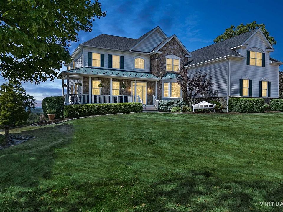 Majestically perched within The Legends-a premier golf course community, this 5Br 4.1 bath home features mountain & golf course views and amazing sunsets from the covered deck and rear patios. The open concept L/R & D/R is great for entertaining. Gourmet Kitchen features upgraded Maple Cabinets w/ custom hood, granite counters and center island, pantry and a Breakfast Room w/ a view and access to covered deck (the hub of this home). Two story F/R w/soaring stone F/P opens to a Sunroom w/ walls of windows to capture the view. Main Floor office w/ French doors - great for remote working. There is also a Powder Rm and Mud/Laundry Rm w/ built ins on first floor. Convenient dual staircases lead upstairs where there is a Master Suite w/tray ceiling, His & Hers walk in closets, Sitting Rm & updated Spa bath. 3 nice size additional Brs, 2 full Baths and a Loft complete the upstairs. In the walk out lower level there is a Media Rm, Wet Bar, Game area, Guest Rm/5th Br, full Bath and plenty of storage. Custom built ins that open for storage surround the pellet stove. Expansive patio areas - great for outdoor entertaining & BBQ's, A true must see you wont be disappointed.