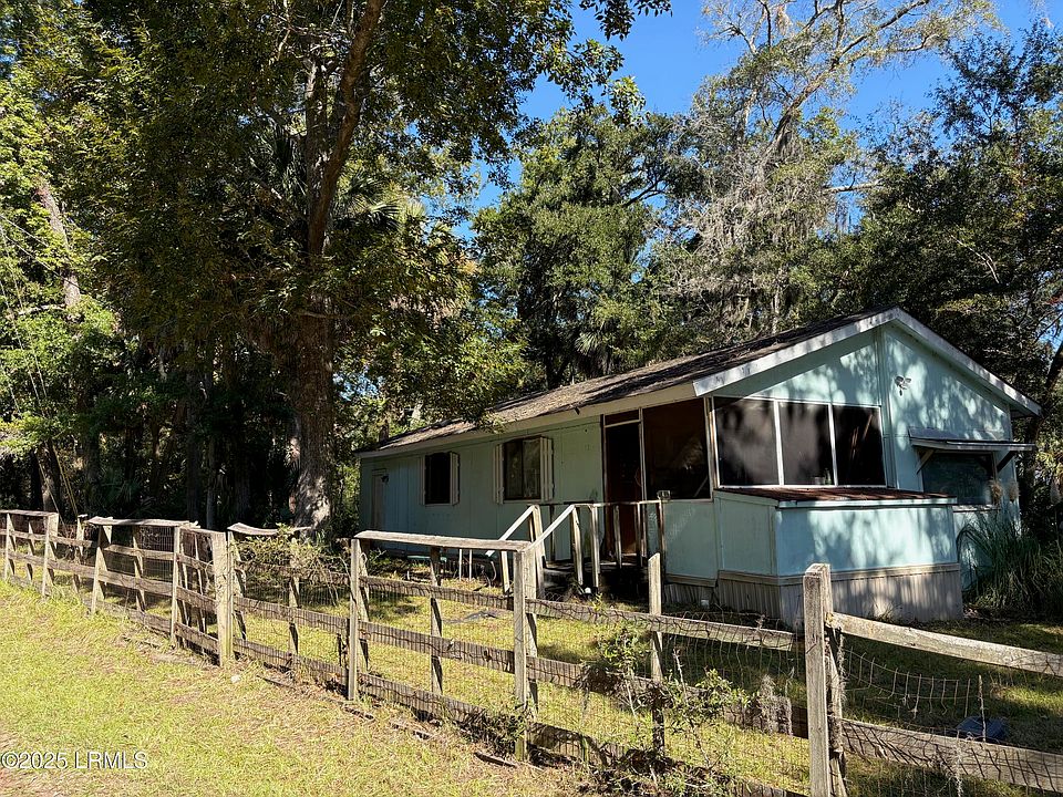 I may not be much to look at, but I am to look and listen FROM! This extraordinary piece of property offers views of the ocean with the sound of waves lapping on the nearby shore. This is an older (1982) model mobile home that was effectively boxed in with a composition roof and wood siding. It is in need of extensive work and is being sold as-is. A new owner could rehab this or remove it and start from scratch. In either event, this gorgeous almost half acre lot with water, septic and electric already in place, represents a tremendous value and opportunity in Coffin Point. The pictures do not do it justice, but a visit out will, especially if you capture riders on horseback passing by at a leisurely gait. Coffin Point out on Saint Helena Island is very much a ''IYKYK'' place for local and a must see for newbies. The beautiful beach in the pics is a short walk, bike ride or golf cart outing from this property. Looking for a coastal/beach lifestyle the provides unparalleled peace and quiet? You're not gonna top this!