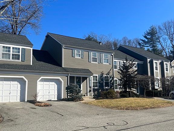 Immaculate Shaw Farm Village town house. This 2 bed, 1 1/2 bath home features two story entry, updated kitchen with granite counters & stainless appliances including gas range. Sunken living room with wood burning fireplace, vaulted ceiling and skylights leads to private deck with grilling permitted. Upstairs you will find generously sized bedrooms and master walk in closet. Updated bathroom includes tub/shower with subway tile surround. Finished basement with plank tile flooring, laundry and bulk head access. Mechanicals have been updated. 1 car garage. Association clubhouse and in-ground pool. Move in!