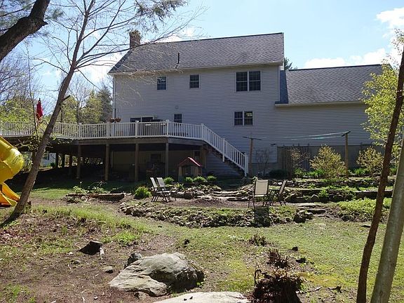 Gorgeous and spacious property on the Amherst side of Belchertown has everything! Great neighborhood, fruit trees, perennial and vegetable gardens, fire pit, woods and stream. Enjoy dining and entertaining on the expansive back deck or drink a cup of coffee on the front porch. Inside features huge sunny rooms, large living room with fireplace, finished walk-out basement, and an art studio. Hardwood floors and tile throughout first and second floor. Kitchen has high-end Bosch appliances and Ashfield schist stone countertop. Two-car attached garage is over- sized and has built in storage shelves. Solar hot water and a wood-burning stove fireplace insert make this house energy efficient and cozy in winter. This move in ready home is minutes from Amherst, a prime location to all major routes as well as to Belchertown Stop & Shop, Antonio's pizza, the Belchertown library and schools, and the Quabbin reservoir.