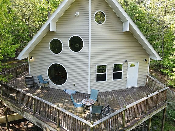 Private, country setting on unrestricted 1.06 acre lot! Get ready to enjoy life in this peaceful lake community with friendly neighbors & close to Lake Nottely. Home has 3 Bed /2.5 bath, spacious rooms & plenty of room for family & friends. A large eat-in kitchen with wood cabinets, stainless steel appliances, pantry, plus a dining area with large nautical window to enjoy the beautiful view! Big, round windows offer natural light & a cozy living room with rock, gas fireplace. Large master suite & loft area with ensuite bath & private balcony to enjoy your morning coffee. Full unfinished basement is poured concrete, has a half bath & versatile - finish as you like, room for workshop, office, additional bedroom/craft room & would make a great rec or theater room - tons of storage space! Nicely wooded, fenced in yard with firepit & room for a garden. Relax & entertain on the oversized deck with seasonal lake views - outdoor living at it's best! Hi speed internet available. Low maintenance & ready to make it your own! Don't break the bank with this lake community charmer. STRs allowed. Close to Marina with boat slips & rentals & convenient to town.