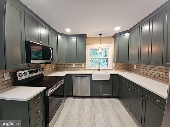 This rancher features many updates and sits off the road in Paradise Lake area of Alloway. This home offers a spacious living room with hard wood flooring, a bay window providing natural light to flow through the room and recessed lighting. The beautiful kitchen has new cabinets with crown molding, tile backsplash, upgraded countertops, window above the farmhouse sink over looking the rear yard, recessed lighting and stainless steel appliances. There are three bedrooms with recessed lighting and hardwood flooring. The bathroom has been remodeled with a pocket door. The full basement is where you will find the utilities. Some of the updates include a new roof, water heater, heating system and central air.