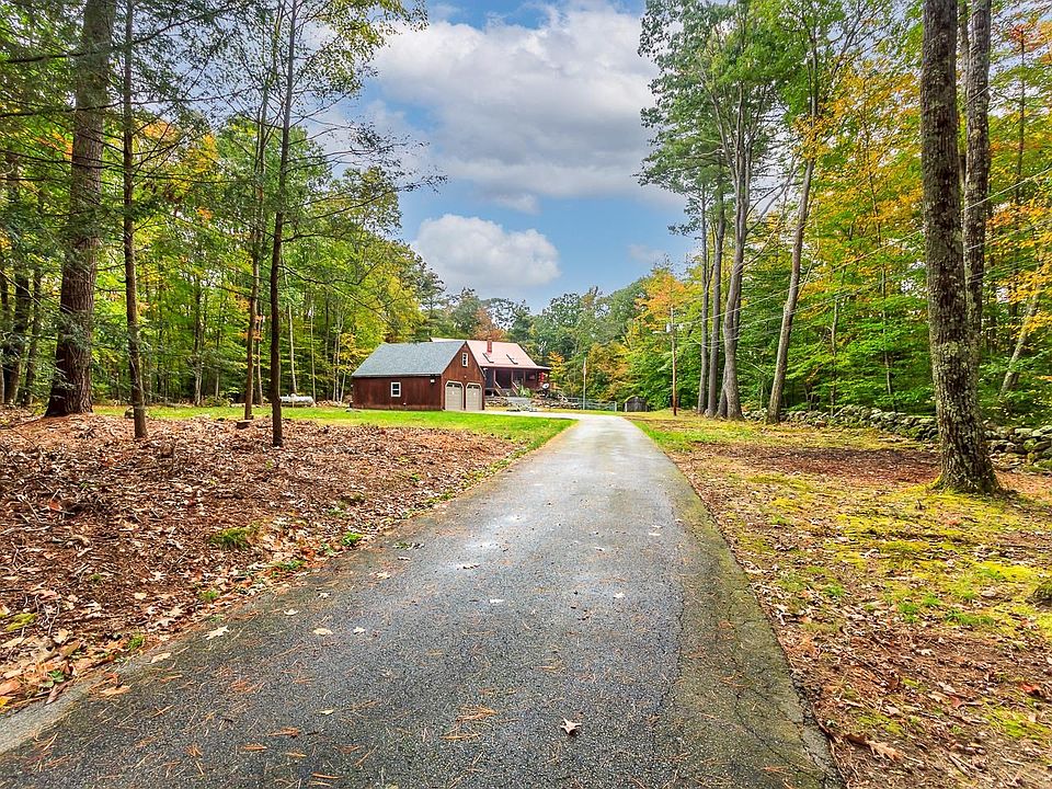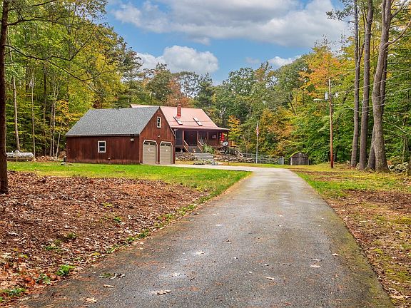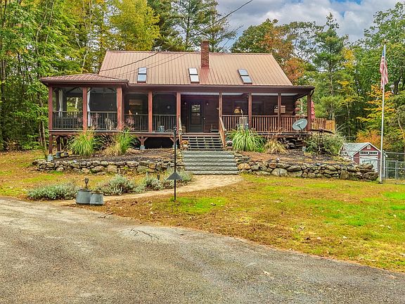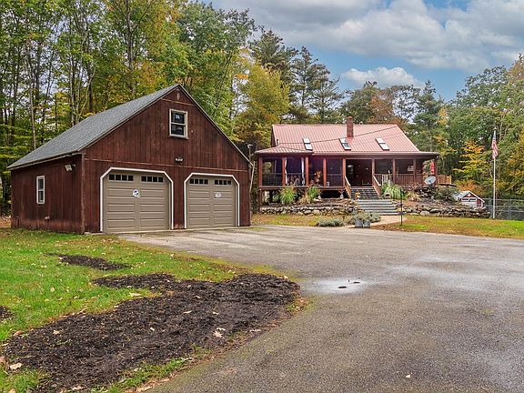 Welcome to 85 Stevens Hill Rd a log cabin style home in picturesque Nottingham NH! This home is close by to Epping & Raymond which have major shopping centers, highway access for commuters, and plenty of restaurants including the Tuckaway Tavern! This home is well recessed on over 8 acres of wooded land that backs up to the Bean River. This beautiful home has an expansive farmer’s porch with screened in room perfect for enjoying the warmer months as well as a wrap around deck great for grilling, entertaining and the like. As you enter you will be greeted with vaulted ceilings with a lovely wood aesthetic giving you a sense of warmth. This property has a lovely floor plan with an open concept kitchen/dining/living room area. The kitchen has been renovated and has newer cabinetry, a large island, farmers sink, as well as stainless steel appliances. Rounding out the 1st floor you have a good sized bedroom and a half bath with its own laundry room. As you head up to the 2nd floor you have a centrally located Mini-split which provides heat/cooling and supplements the heating system as well as the Vermont castings gas stove. The 2nd floor features another good-sized bedroom as well as a full bath, last but not least a nice loft area that could be an office or bonus room. This property also features a new shed in the back with paver patio area, a detached 2 car garage with walkup to the 2nd floor great for woodworking/crafts, and a 14 KW standby generator which powers most things.