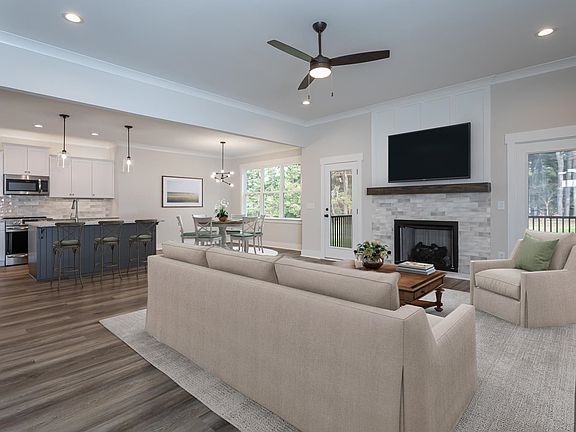 You won't believe this AMAZING RANCH PLAN ON ALMOST 2 ACRE LOT! It's perfect for hosting guests or teens with a separate suite! No HOA/Restrictions! Sealed Crawl Space! You'll love the luxury hardwood style flooring and elegant cove crown molding throughout the main living area! The kitchen is a dream with quartz countertops, tile backsplash, custom white cabinets, under and over cabinet lighting, and stainless steel appliances. The center island is a stunning contrast with its "Urbane Bronze" stain and single bowl sink. The dining area is bright and spacious with a triple window overlooking the backyard. The Owner's suite is a relaxing retreat. The En Suite Bath features a 12x24 tile floor, a dual vanity with quartz and custom white cabinets, a Spa Style tile surround walk-in shower, and a walk-in closet. The family room is cozy and inviting with a tile surround gas log fireplace with a stained mantle and trim accents. And don't forget the French door that leads to the rear screened porch where you can enjoy the fresh air. Upstairs, you'll find a bonus room and unfinished storage areas for all your needs.