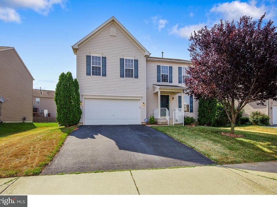 Nice living in Newell Creek! Great space and appeal, starting with beige siding 4 BRs/3 ~ bath 2-story home accented with hunter green door/shutters, brick-trimmed tree and beds, and covered front porch. Evergreens anchor sides of home and provide symmetry and pop of greenery. Foyer establishes upscale tone with ceramic tile floor with diamond deco tiles in blue/gray/burgundy. To left, handsome wood-railing staircase juts out, while to right is generous entranceway to LR/sitting room. Beige carpeting offers softness, while oversized window provides sunlight. Practical layout dictates roomy hall closet and 1st-floor PR with pedestal sink and ceramic tile floor. Home opens up with expansive FR. Taupe carpeting offers coziness and double window offers views to backyard. Wall space allows for huge entertainment center and plentiful seating. Tucked in corner is angled marble gas FP, making this room 1st choice for comfort and conversation! FR is open to sleek kitchen with ceramic tile floor (same as entry), cherry cabinets finished to ceiling, black appliances with black tile backsplash, and desk area for organizing paperwork. Roomy dining area in kitchen has white French doors, which grant access to 8-window sun-infused sunroom with hardwood floors and outdoor access. Ceiling fan keeps room cool, while enjoying surround feeling of nature. Finished LL has huge carpeted rec room with dual lights. Great game/TV room for every day or entertaining at night! Beyond is room with B & W flooring, ideal for office or private 4th BR. Full bath of beige ceramic tile, slider glass shower door and cherry vanity on this level is bonus! Carpeted steps with volume ceiling leads to 2nd level. Stairs open to big loft area, awesome for computer station, retreat area or den. To right are 2 secondary BRs with almond-colored carpeting, long windows and big closets! On other side of loft, affording privacy, is generous carpeted MBR with his-and-hers walk-in closet, ample room for both wardrobe and accessories! Design of master bath makes it easy for 2-person morning routines with space and dual-sink vanity. Garden tub with decorative ceramic tile is heavenly for soaking after hard workday, while all-glass shower with tile and decorative border is perfect for quick weekday mornings. Backyard touts traditional white picket fence with trees and flat open lawn. Dual-door shed is go-to for storing outdoor equipment. Nearby to Rt. 13 with many perks! Terrific on Thomas Harmon Dr.!