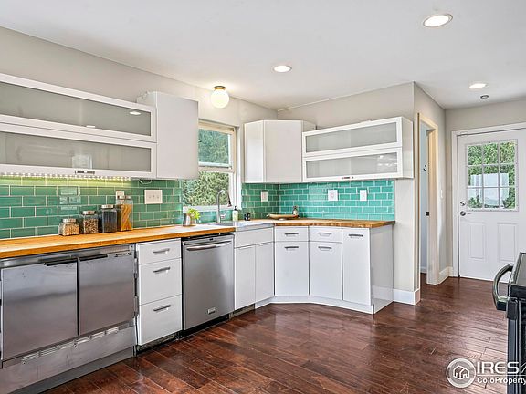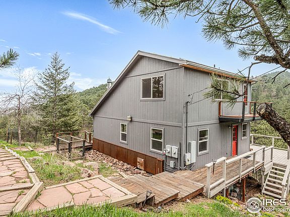 Encapsulating the essence of Colorado living, this home is situated on 2.54 acres in Pine Brook Hills, nestled among forests and abutting the reservoir. The modern interior motif features vaulted ceilings, a wood-burning fireplace, and an abundance of windows, including a glass garage door in the open living/dining space for seamless connectivity to one of the home's many balcony spaces. The kitchen has been thoughtfully remodeled with sleek cabinetry, stainless steel appliances, and a vibrant tile backsplash. There is also a separate lower-level rental unit with an above-ground orientation, full kitchen, and bathroom. Multiple decks, balconies and flagstone patio areas offer endless ways to enjoy this sought-after mountain setting.