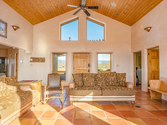 Immerse yourself in the breathtaking landscape of the American Southwest with 85 Tomas H Romero Road! This territorial-style home stands as a timeless testament to rustic elegance, boasting three bedrooms and three full bathrooms and a harmonious blend of modern comfort with iconic southwestern charm. Its open-concept living area and kitchen offer a seamless flow ideal for both everyday living and entertaining and are adorned with iconic saltillo tile floors and plaster walls. The historic allure of the property is accentuated by a glimpse of the adobe brick from the original homestead built in 1817. Gaze out upon the expansive western views of the Rio Pueblo river, mesa, and Pueblo land from the covered patio, while the majestic Taos mountains and Picuris Peak dominate the eastern horizon from the private 3.87 acres. Keep an eye out for the bighorn sheep who frequent the area. Additional conveniences include a third full bathroom, a laundry room, and an attached two-car garage, completing this exquisite retreat. Don t miss out on this one-of-a-kind home at 85 Tomas H Romero Road!