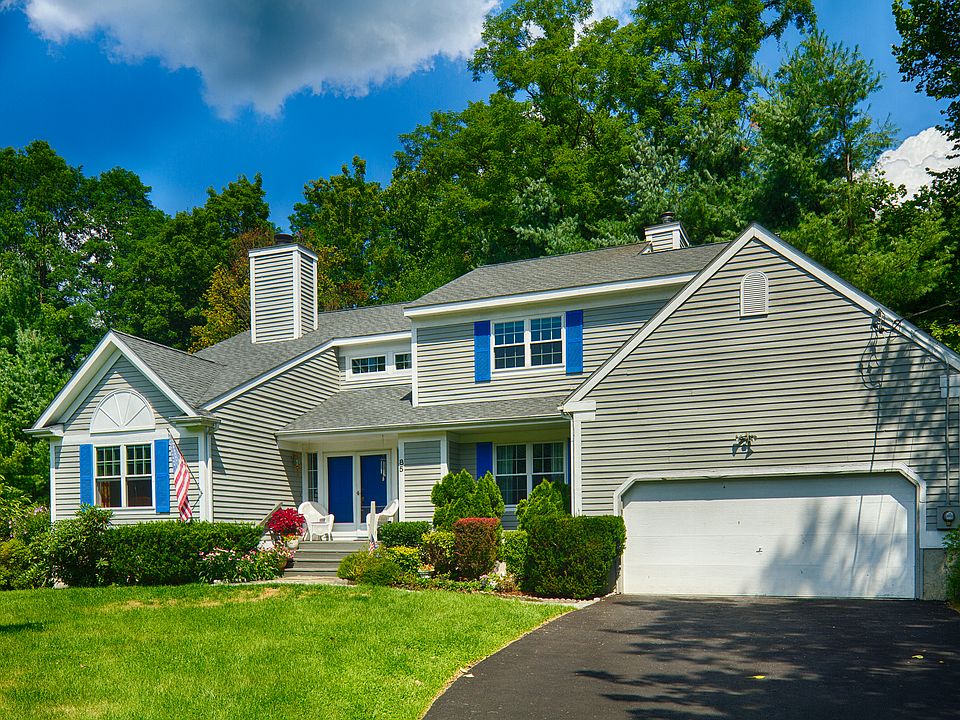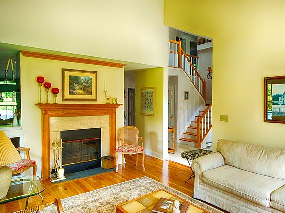 Colonial style home with sundrenched rooms, offers a two story foyer, livingroom with a two sided fireplace and vaulted ceilings, open kitchen with center island granite,counter tops and breakfast nook, familyroom with fireplace and sliders out to private yard and two tiered deck, master bedroom suite with tray ceilings recessed lighting, two walk in closets and bath with skylights separate shower and whirlpool tub, beautifully landscaped property and newly paved driveway! Motivated Seller!