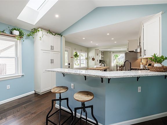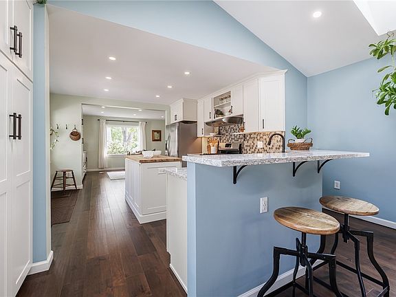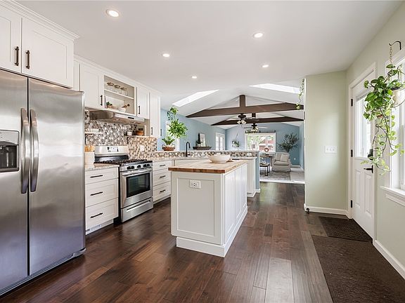 Welcome to this beautifully renovated 4-bedroom, 2-bath Colonial, perfectly situated on a peaceful street - blending timeless charm with modern style. Step inside to a gorgeous first-floor renovation completed in 2023, showcasing hardwood floors and a custom kitchen with quartz countertops, S/S appliances, and an open-concept layout that flows into a bright, spacious living room. Soaring vaulted ceilings, exposed beams, and skylights create a dramatic and inviting space perfect for everyday living and entertaining. The property features a large, private back yard ready for gardening and/or kids or pets to run around. An over-sized Trex deck off the living room makes for the ideal outdoor entertaining space - perfect for morning coffee or summer gatherings. The home also features brand new carpet in rear first floor bedroom (2025), windows professionally cleaned (2025), and a new roof and skylights installed over the stunning addition (2022). Close to shopping and very easy expressway access!! Looking for completely move-in ready?? THIS IS IT!!! An absolute must see at this price point!! Offers due Monday, 6/9 by 2pm.