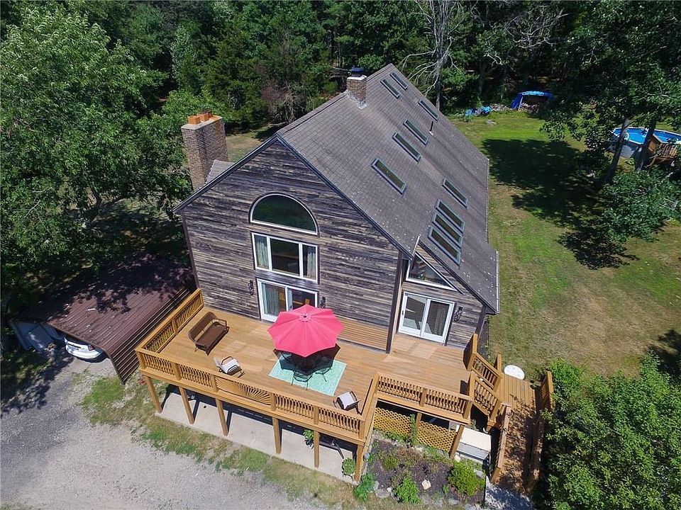 Amazing timber frame Contemporary set on 16+ acres of land with a spring fed pond and a 40x60 heated equipment garage with 3 14' doors! The house features 3 or 4 bedrooms and 3.5 baths, beautiful fieldstone fireplace with vaulted ceilings and hardwoods floors and doors thru out. 1st Floor master suite with bath and 1st floor laundry plus a finished walkout lower level with an extra kitchen plus an above ground pool. All at the end of a private country road in Western Coventry! NO DRIVE BYS PLEASE! BY APPOINTMENT ONLY!