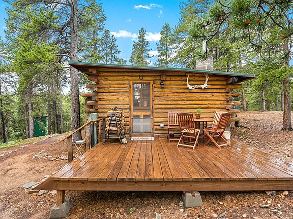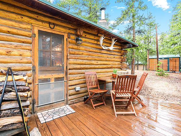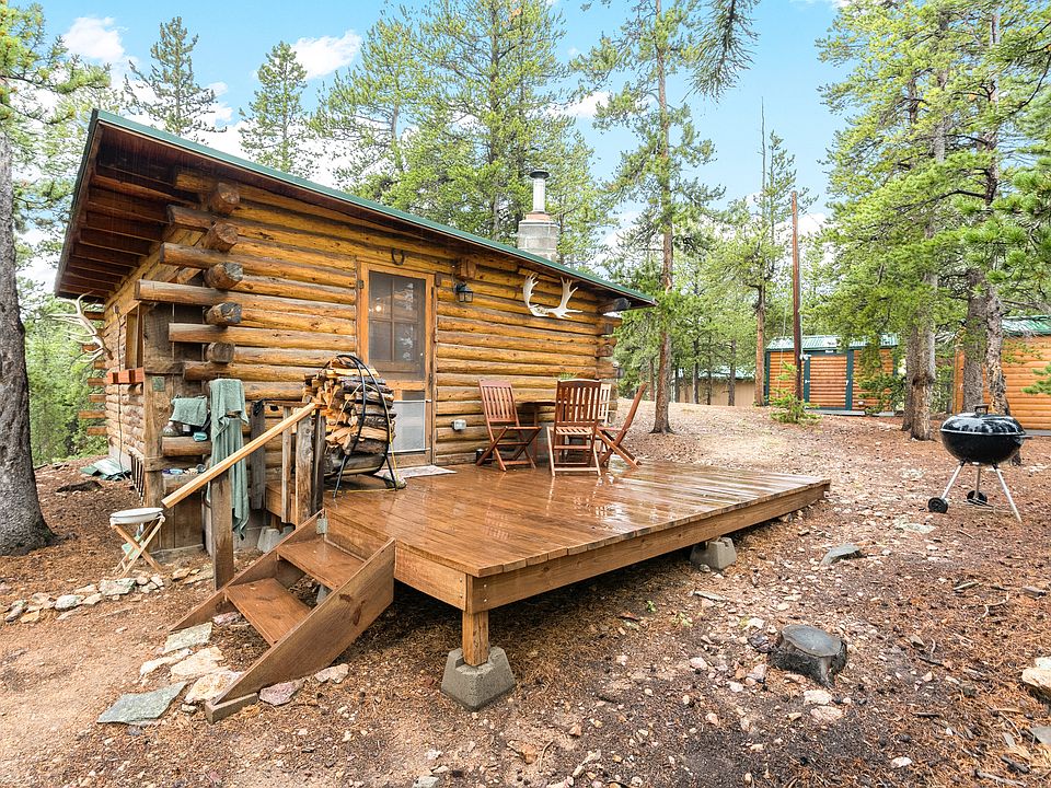 Very cool and cozy cabin, sitting on 2.27 private acres. Made of structural D logs, nestled in lodgepole pines and aspens this is a wonderful getaway. Surrounded by spectacular vistas of the James Peak Wilderness, the Indian Peaks Wilderness and the Arapahoe and Roosevelt National Forests. Lots of wildlife, close to hiking, skiing, and the quiet enjoyment of nature. The cabin packs living, dining, and kitchen and bedroom areas into 416 well planned square feet. A large stone fireplace with an insert keeps the cabin warm on cold days/nights. A deck, and close level areas around the cabin offer nice outdoor spaces. There is a one-car detached garage, and three other out buildings for storage, a studio, and possibly a guest room. Right now the cabin is set up as a 2nd home. There is a 120 day/yr occupancy limit or 90 day continual stay. There is a well, with new pump, and an outhouse. The cabin comes furnished. See list of furnishings in the document section.