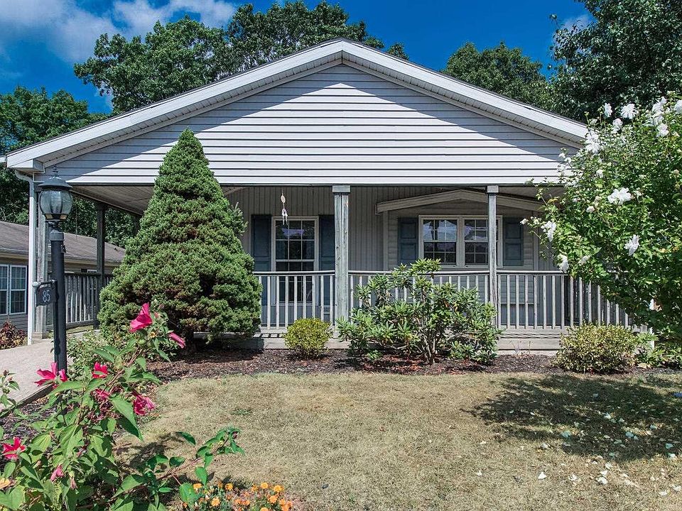 Unbelievable price! Don't miss this fantastic opportunity. The Gables is simply a wonderful place to live. As you drive through the community, you will see people walking, riding their bikes and stopping to talk with their neighbors. It is a welcoming, impeccably maintained community. Enjoy relaxing and taking in the sights from the front porch or escape from it all and enjoy some quiet time in the light-filled, four season room. You will love the soaring, vaulted ceilings and the open, airy, seamless flow between the living room, dining room and kitchen. The kitchen, bathed in natural light from the skylights above, offers loads of cabinetry, plenty of counter space and a generous dining area. The spacious primary bedroom boasts a walk-in closet and an ensuite full bath complete with a double vanity and a top of the line Safe-Step walk-in tub. The second bedroom is large and includes a walk-in closet. Enjoy the separate laundry room which also serves as a great storage space. Lovely landscaping, a shed and a level back yard which backs up to the woods complete the package. Come take a look and start living a low-maintenance, relaxed lifestyle.,FLOORING:Vinyl,Laminate,ExteriorFeatures:Landscaped,Cooling:Ceiling Fan,AboveGrade:1544,ROOF:Asphalt Shingles,EQUIPMENT:Carbon Monoxide Detector,Smoke Detectors,Heating:Gas,InteriorFeatures:Sliding Glass Doors,Electric Stove Connection,Walk-In Closets,Washer Connection,OTHERROOMS:Laundry/Util. Room,Sun Room,AMENITIES:Pool,Level 1 Desc:LR,DR,KIT,SUNROOM,PRIM.BDR,PRIM.BATH,BDR2,MAIN BATH,LNDRY,ASNFENCLDS:Salaries/Payroll,Management
