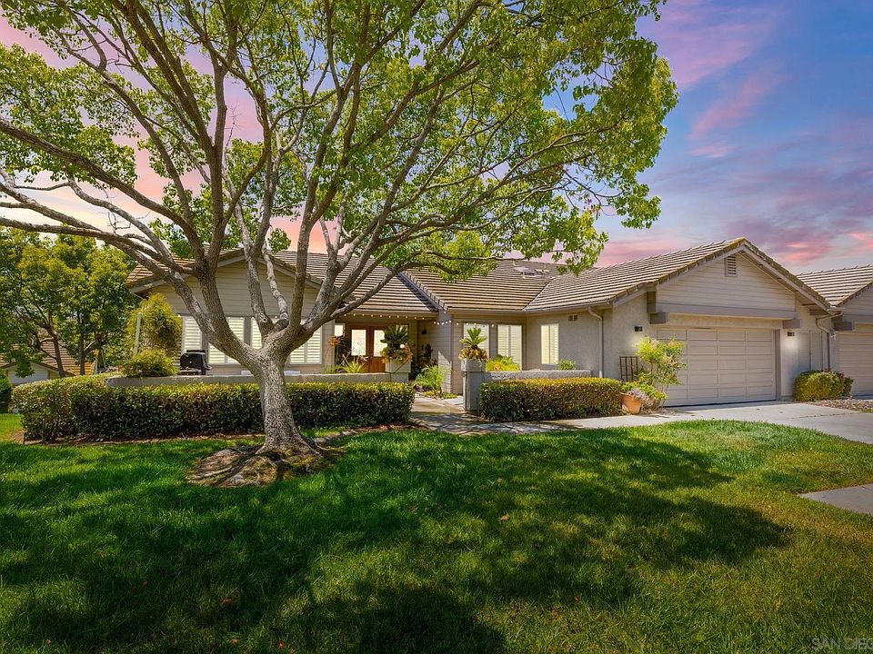 Welcome home to The Terraces, a serene gated community featuring wonderful updated homes! This private residence is sure to impress with its beautiful front patio and immaculate landscape. Step inside to find hardwood floors, cozy living room with fireplace, open beam ceilings, and plantation shutters throughout. The chef's kitchen has been fully remodeled and features quartz countertops, soft-close cabinetry, new stainless steel appliances, custom backsplash & a large island with seating. The master suite is conveniently located on the main level and boasts a spa-like bath along with a generous walk-in closet. Multiple sliding doors lead out to the relaxing lounging patio where you can take in the stunning views or enjoy the nice breeze. Two secondary bedrooms are located downstairs for added convenience. Other notable features include new privacy glass windows at entryway, attached two car garage w/ ample storage; plus access to two heated pools & lush landscaping throughout the neighborhood! Don't miss this opportunity - come see it today!