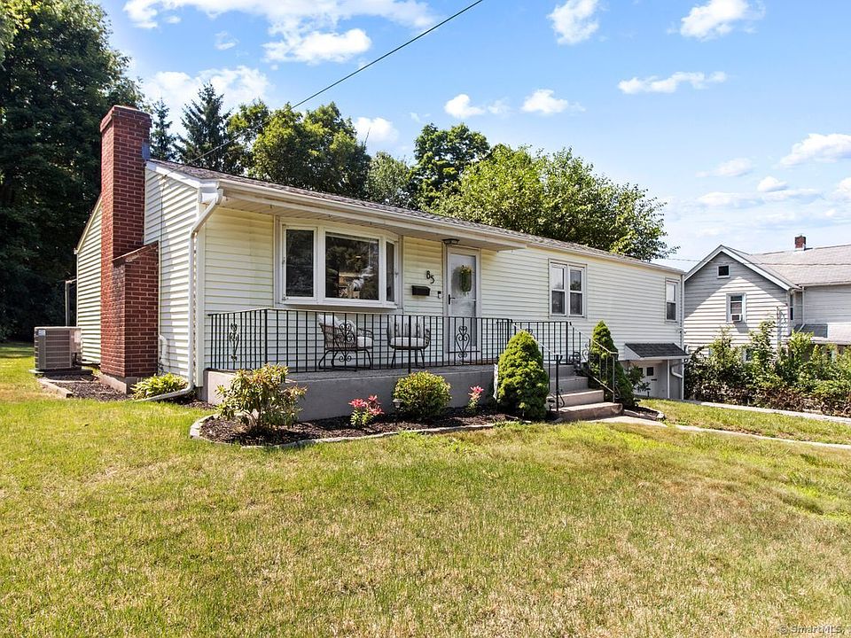 Move right into this charming ranch in the desirable West End! With a remodeled kitchen and full bath, new HVAC and roof, gleaming hardwood floors, and a shady private yard, this home checks all of the boxes. Natural light streams through the bay window in the living room which is spacious enough for entertaining. The dining room and kitchen are both open to the living room creating an easy flow between spaces. The kitchen has granite counters, stainless steel appliances, and all sorts of clever storage in the cabinets. The large island provides seating for casual meals. As you head towards the bedrooms, enter the full bath on the left which has also been fully remodeled with on trend finishes. You will enjoy the heated towel rack during the winter! Two of the three bedrooms are quite large - choose which one you would like as your primary! The third bedroom could also serve as a great home office space. The partially finished basement contains the laundry area and is the perfect spot for your home gym or additional living space. In nicer weather, enjoy the view from your front porch, or relax in private on your covered rear deck. This sidewalk neighborhood is close to golf courses, the New Britain Museum of American Art, and Walnut Hill Park which provides recreational facilities including a pool, tennis courts, pickleball courts, and basketball courts. Oil-to-gas conversion, new water heater, new roof all in 2022. New AC 2023. Schedule your showing today!