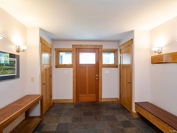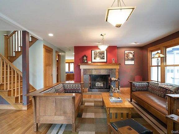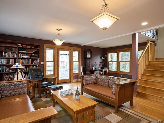 Custom Arts + Crafts home filled with artistic details. Owner/Architect brought down to existing 1930 s foundation in 2004, and totally rebuilt with all new electrical, plumbing & high density insulation. Home is filled with quality custom features - oak, stone, and tile floors, solid wood built-ins in every room, art glass, window seat w/storage, vaulted ceilings. Oversized wrap-around porch, stone entry foyer, large eat-in Chef's kitchen w/stainless, open to Dining Room. 10 w, 4-panel sliding door, to trex deck overlooking private .7 acre property. Center doors allow a wide 5 opening to connect the indoors & out. Large Maple tree shades deck all Summer long. Play loft w/ secret stair and secret message tube from loft to the bedroom below. Addl bonus 800 sq. ft room with sep entrance, above oversized heated garage. Too many upgrades & features to mention them all - see MLS listing for complete list. S. Orangetown schools. 5 Mi to Nyack Village, 18 Mi to GWB/NYC. 3D tour available.