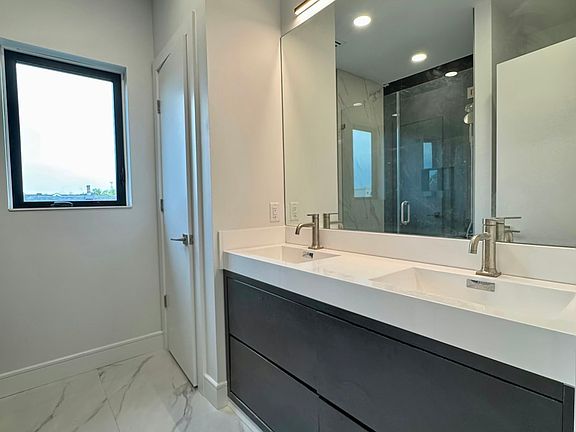 1 full bathroom with designer-level finishes throughout and LARGE stand up shower.
