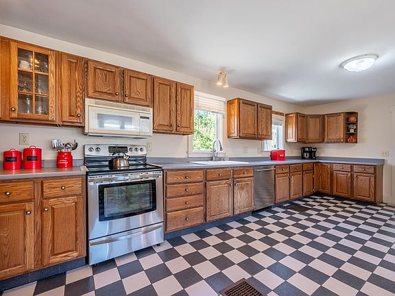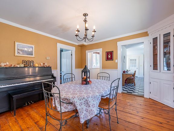 Nestled in the heart of Bradford, NH, this charming New Englander offers a blend of historic character and modern convenience, just steps from downtown amenities. The spacious 4-bedroom, 2-bathroom home features wide pine floors throughout, a spacious kitchen with eat-in nook, formal dining room, living room and first-floor bedroom opportunity for added accessibility. Upstairs you will find the primary bedroom, additional bedrooms or office space and a large full bathroom. Attached is a classic 3-story post-and-beam barn with ample workshop space, ideal for hobbies or storage. Enjoy your outdoor space on either the large deck or covered wrap around porch. Located just 10 minutes from Lake Sunapee and Mount Sunapee, this home combines rural tranquility with outdoor adventure nearby. Just 30 minutes to Concord for dining, local shops, theater, golf and more. *Showings begin at the Open House on Saturday, October 26th, from 10:00 am - 12:00 pm.