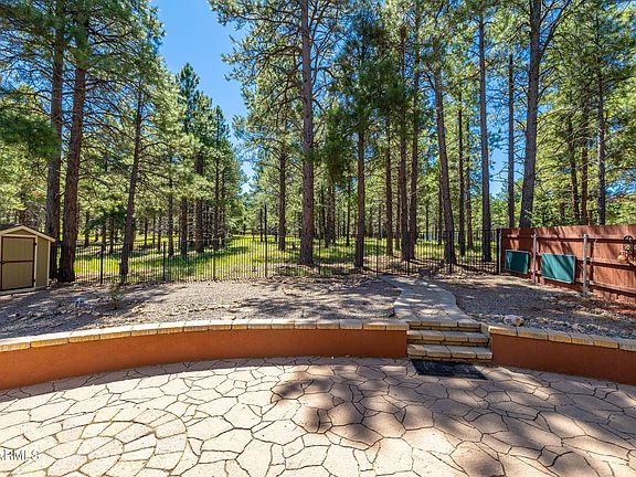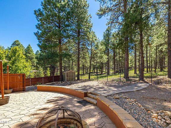 Amazing high country living at this Ponderosa Trails Home bordering the National forest with views of San Francisco Peaks. With 4 bedroom and 3 baths this home is built for entertaining. Large great room with beam accents, beautiful front windows with gorgeous views and a cozy fireplace for cold evenings. Gourmet kitchen with knotty pine cabinets, granite countertops, kitchen island, separate dining space and the most unbelievable view out of your kitchen window. Large master with en suite bath featuring dual vanities, soaking tub, step in shower and walk in closet. The outdoor space is fantastic with a covered patio, storage shed and fenced yard with outstanding forest views. Great location - close to all Flagstaff has to offer. This house is perfect in every way!